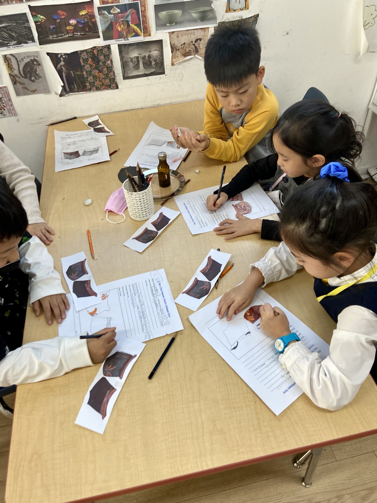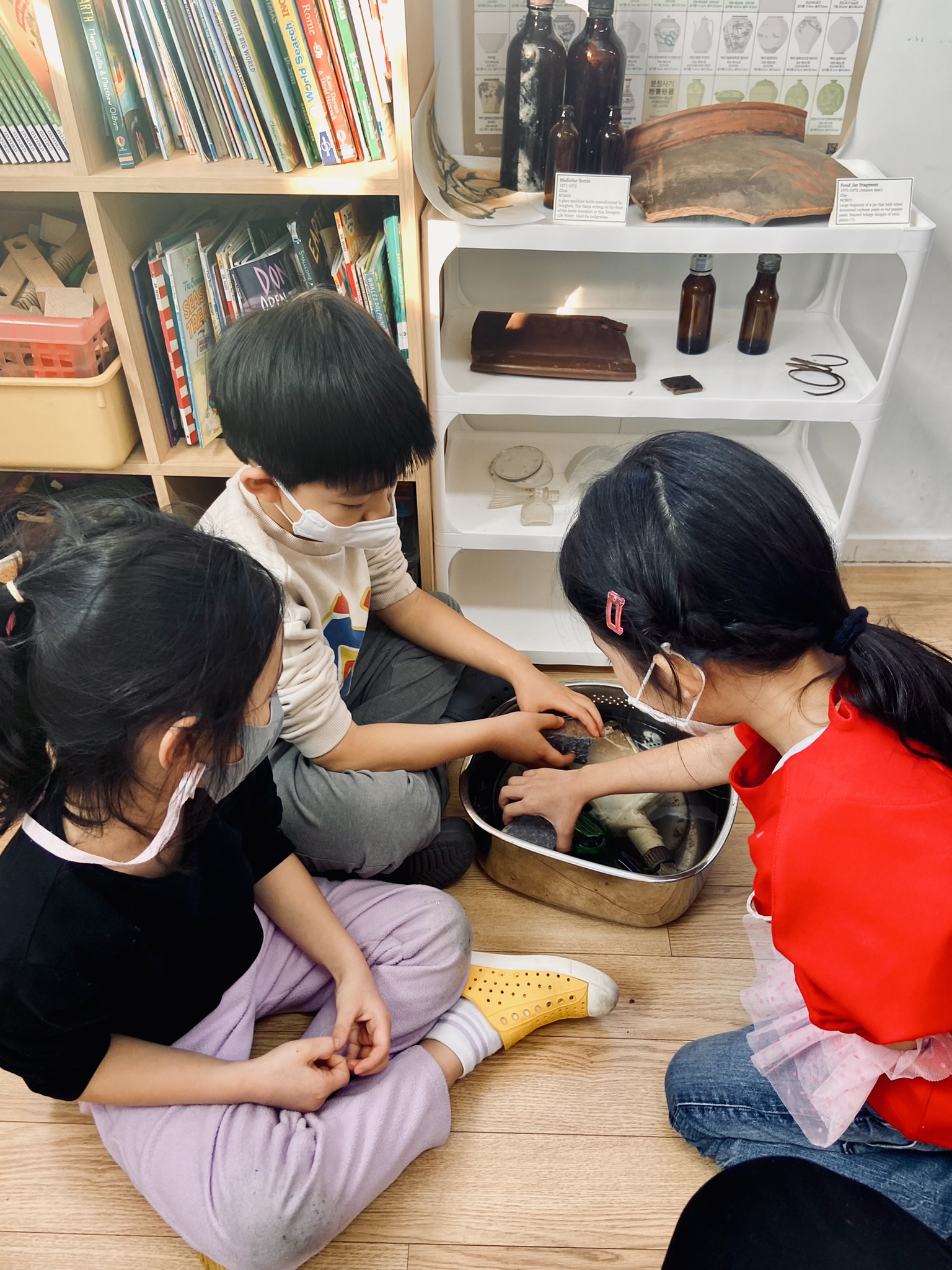 During my role as an Arts & Humanities Teacher at PODO Club International Academy, I was given full creative freedom to develop lesson plans and activies for my students. Each week I created thematic lesson workshops focused on Archaeology, the Arts and Humanities. I brought my knowledge and passion for these topics into my classroom, facilitating unique experiences to ignite curiosity and excitement for history and understanding the human experience throughout time. My largest project of the year was giving my students an overview of the entire archaeological process through a hands-on approach. To begin, I took my students to a nearby park to look for ‘artefacts’ (modern trash). Armed with paintbrushes and small shovels, I guided the students in carefully uncovering found ‘artefacts’ with patience and a gentle hand. Old medicine bottles and broken pottery sherds were treated as priceless objects to be brought back to the class and later analysed.