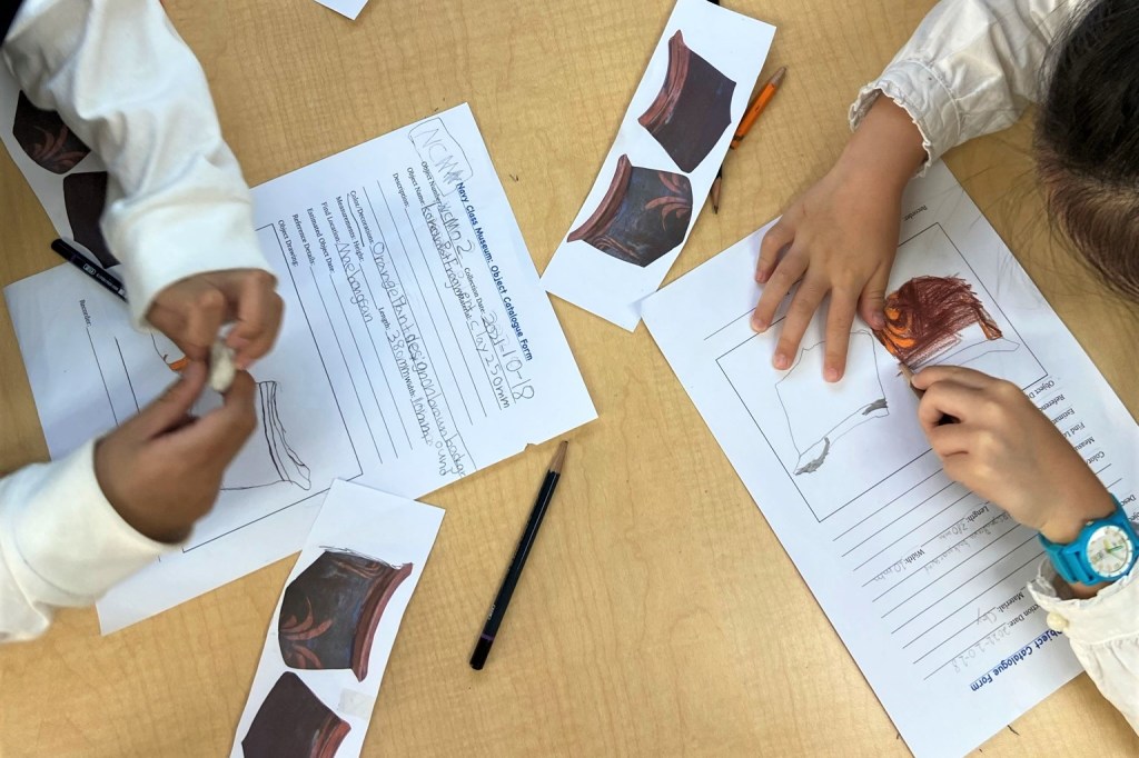The following stages of this project were teaching object photography, cleaning, analyses, handling, technical drawing and finally museum catalogue entry. Before any further work was to be done with the objects, I conducted lessons teaching how archaeologists look at the environment and a find site to uncover clues to understanding more about the previous life of an artefact. The students were then given a lesson on proper object handling for a lab or museum setting. After all of this, the students were guided in how to photograph an object before they had the chance to carefully clean their finds. Already at this point, in what would be a multi-month long project, the students were heavily invested in this learning experience. After the objects were clean and dry, it was time to create a catalogue entry for what would become our own classroom museum. I developed a form for them to fill out detailed object information and held a separate lesson teaching technical drawing. The culmination of this project was a class museum organised by typology by the students. By the end of this school year my entire class of five year olds was familiar with the archaeological process and how objects make their way from the dirt into a museum. Through this experience they developed more patience, critical thinking skills, and a newfound interest in the human past. Many students were inspired to engage with history and archaeology further by requesting to go on museums trips with their families outside of school. I received glowing positive feedback from parents and my Director for how I much I invested in creating unique learning experiences for my students throughout the year. Developing and conducting this program was incredibly fulfilling and has only further fueled my passion for Arts & Humanities education.