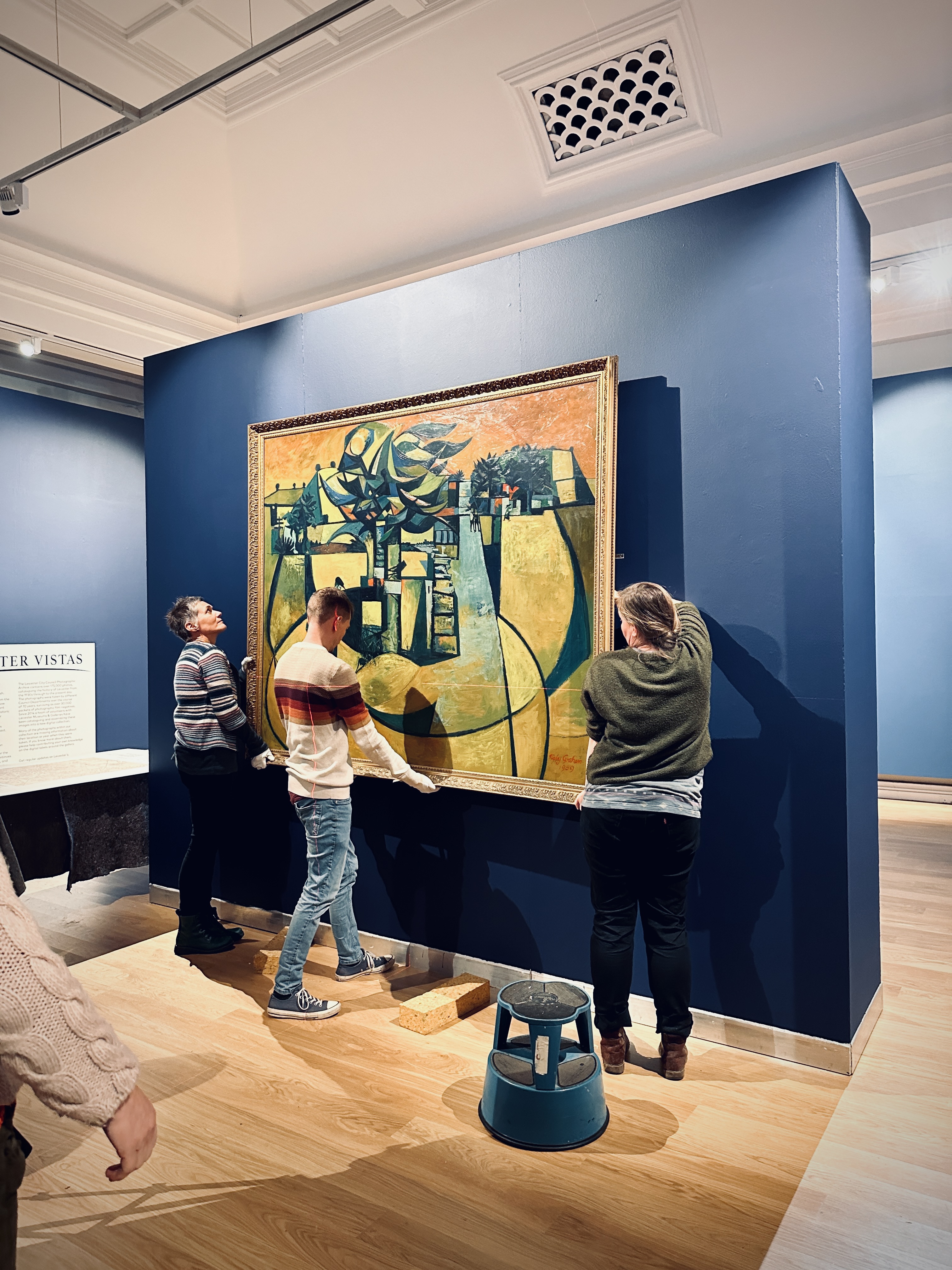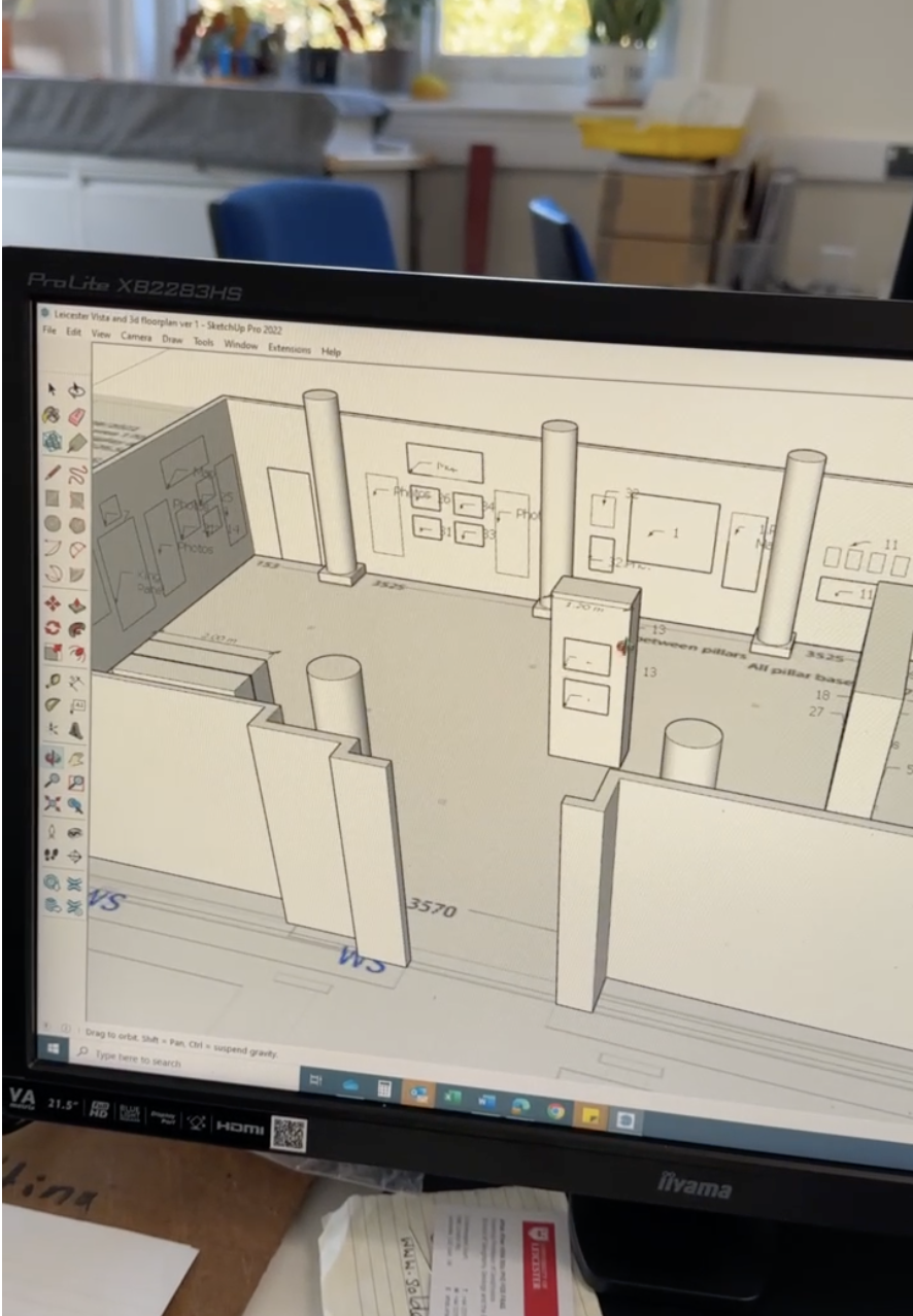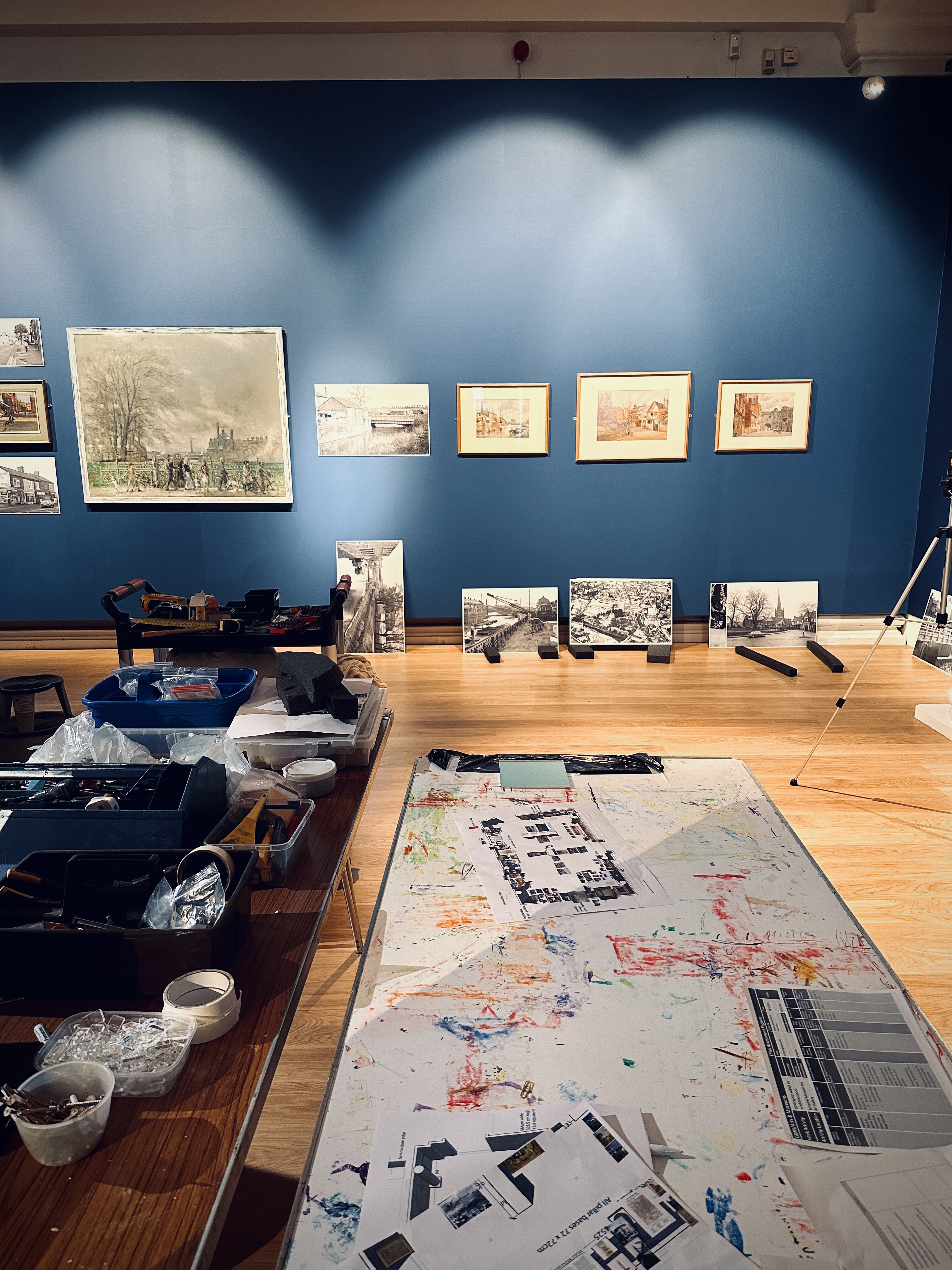What began as a volunteer position digitising the photographic archive collection at the Leicester Museum & Galleries turned into a Lead Volunteer Exhibitions Curator role. Over the last two months I collaborated with the Exhibitions team to put together ‘Leicester Vistas’. I worked with the main curator on the project to develop the layout and content of the exhibit. We developed the underlying narrative and decided on themes for each section of the gallery. After we narrowed down the art and photographs to be used, I was given the task of designing the exhibition layout in the 3D modelling software SketchUp. This was used for the final approval of the exhibition design and 95% of what I originally planned in the 3D model was used during the hanging.