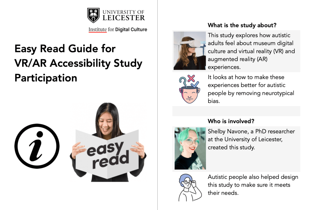- Improve digital culture accessibility with and for autistic adults in museums and extended reality (XR) experiences.