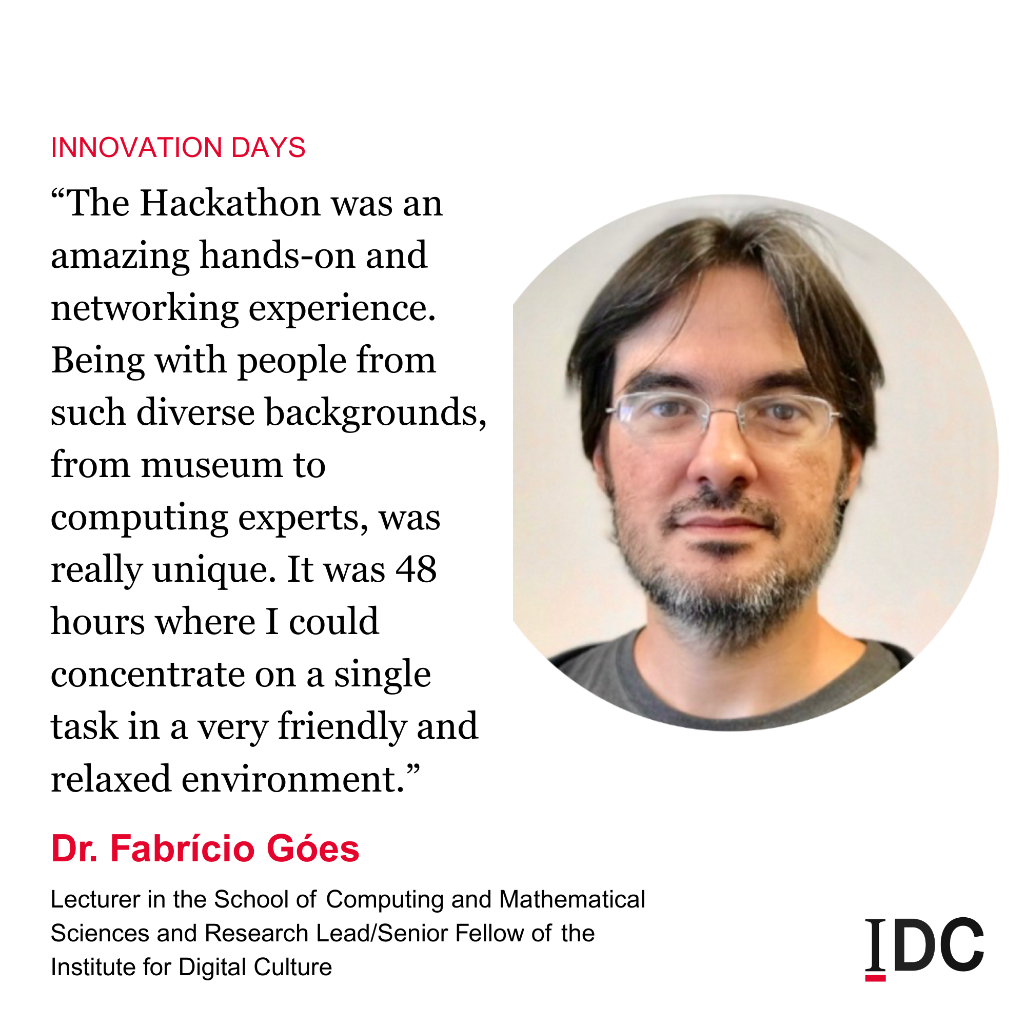 I am currently on contract in this role and responsible for writing social media posts and website content, designing branding material, creating graphic designs, shooting photos and videos for events, and managing the online content strategy for the IDC. Institute for Digital Culture LinkedIn.